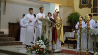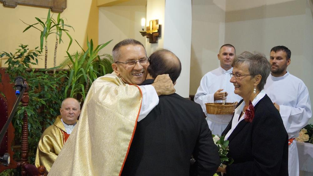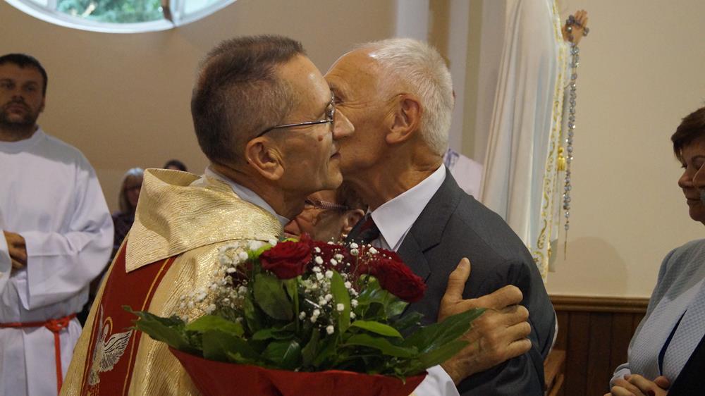"...tym pozdrowieniem luturgicznym, upraszającym pokój i zmiłowianie pragnę dziękować razem z Wami Bogu za 39 lat pobytu na tej górce samego Pana naszego Jezusa Chrystusa, który zamieszkał w stajence betlejemskiej (dzisiaj już mieszka w świątyni) - kocha nas i prowadzi historię zbawienia nadal. Witam Was wszystkich - kochani..." - mówił ks. Franciszek na rozpoczęcie Eucharystii.
