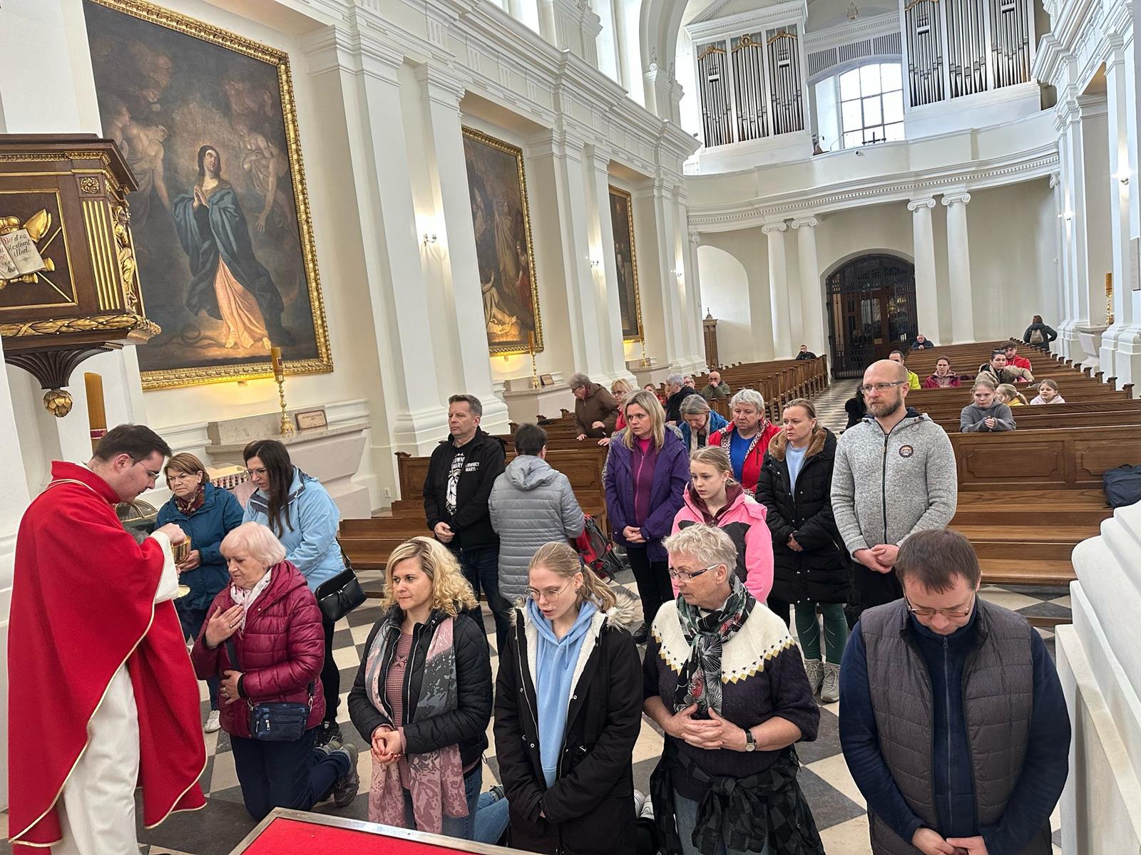 Słoneczna pogoda pozwoliła w pełni doświadczyć uroku Gór Świętokrzyskich i ich najważniejszego miejsca, czyli Sanktuarium Relikwii Krzyża Świętego. Grupa pielgrzymów z naszej parafii wyszła na szczyt pokonując kilkukilometrową drogę krzyżową z Nowej Słupi. Msza święta z oddaniem czci relikwiom, jak również zwiedzanie klasztoru, krypt i wieży, z której rozciąga się malownicza panorama i przejście na gołoborze - to wszystko pozwoliło zbliżyć się do tajemnicy krzyża, która w Wielkim Tygodniu jaśnieje szczególnie. Niech owoce tej drogi umocnią nie tylko jej uczestników, ale i całą parafię.