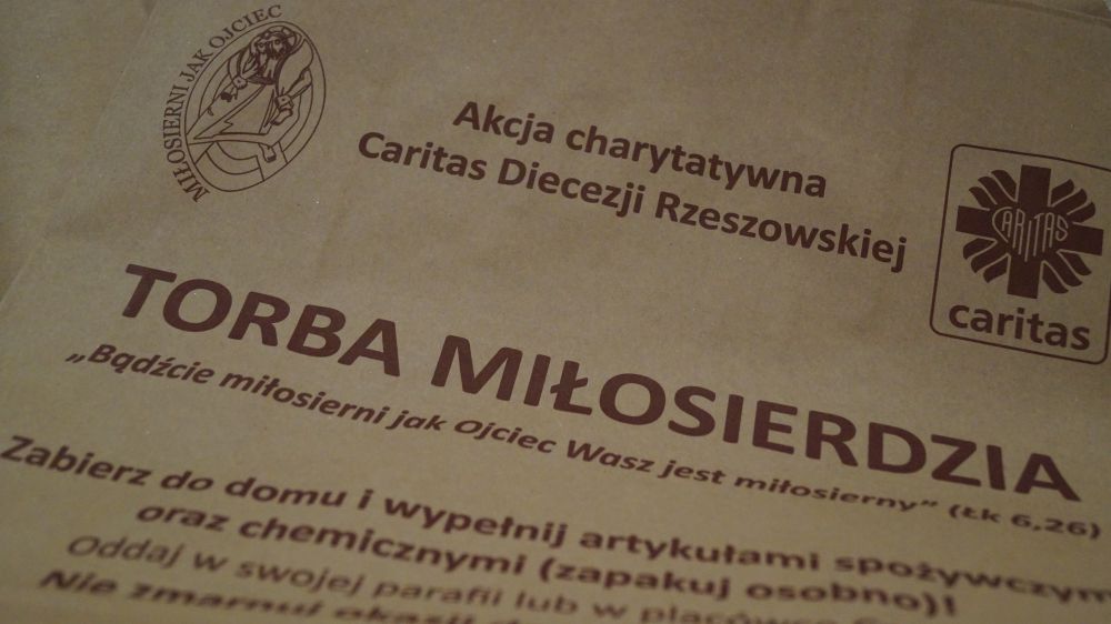 W diecezji rzeszowskiej od 19 listopada, czyli od I Światowego Dnia Ubogich trwa akcja "Torba Miłosierdzia". Caritas - katolicka organizacja charytatywna przekazuje torby, do których możemy zapakować różne produkty. Torby można sobie zabrać do domu, a znajdują się one na stoliku przy prasie katolickiej. Torby Miłosierdzia składamy najpóźniej do 13 grudnia w zakrystii u p. Zakrystianki.